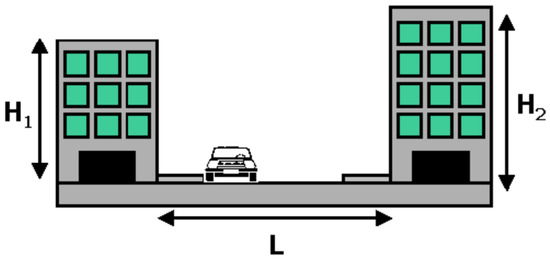 where L is the distance between a pair of two overlooking buildings that could vary along the arc (Figure 1) and BDI is the building damage index.