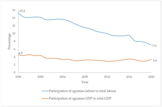 | Agrarian worker: Female | 24.70% | 23.50% | 21.30% | 28.80% |