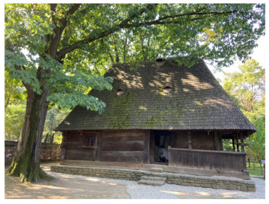 Traditional Romanian architecture evolved gradually, adapting to people’s needs but always reflecting the environmental, cultural, technological, economic, and historic living conditions of each region [35,36,37,38]. As such, old houses constitute living documents about our forebears and make them a valuable tool for learning about the development of each region’s material culture. They are distinguished through their small sizes, simple construction methods, balance of their proportions, and harmony of their decorative ensemble. In the past, they were built from local natural materials according to plans known by the village craftsmen, matching their landscapes and adapting to their environment [37,39,40,41]. This type of buildings dominated the country’s rural areas until the first part of the 20th century.