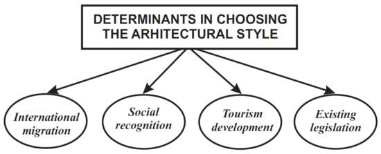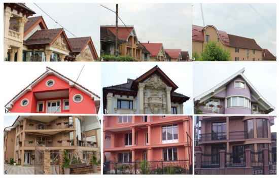 Another wave of changes to the traditional architecture of numerous Romanian rural areas occurred after 1990. The leading causes included: opening of the country’s borders, an influx of foreign investments mainly in the western and central parts of the country, diversification of available building materials, and even the preference of inhabitants towards oversized constructed buildings [47]. This is the period of “maison d’orgueil”, which invaded Romanian villages and are recognisable by their aspect of urban villas embodying a combination of styles and sharing one primary feature: excess (of rooms, ornaments, and size) [48]. Extreme examples of such buildings are the opulent Roma palaces. This phenomenon resulted from the import of international architectural styles and the legislative voids of that time [43,49].