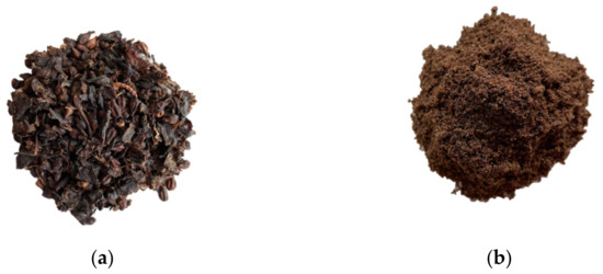 Pictures of (a) raw and (b) dried milled (250–400 µm) EGM samples.
