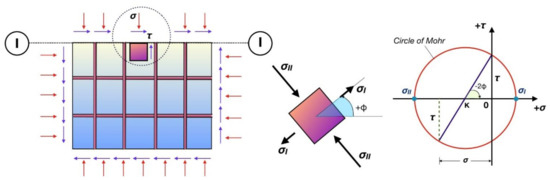 Considering that the normal stress, σ, and the shear stress, τ, are uniformly distributed over section I-I, Equations (4) and (5) are used, where and are the length and the width of the joint core.