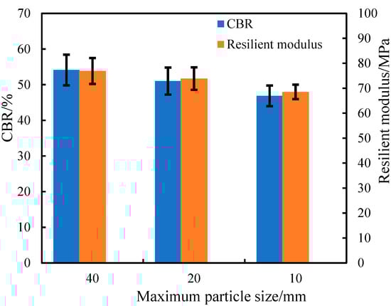 Figure 14 shows the results of resilient modulus and CBR of SRM with different maximum particle size produced by the VCM. The same as the density, the resilient modulus and CBR also increase with the increasing of the maximum particle size.