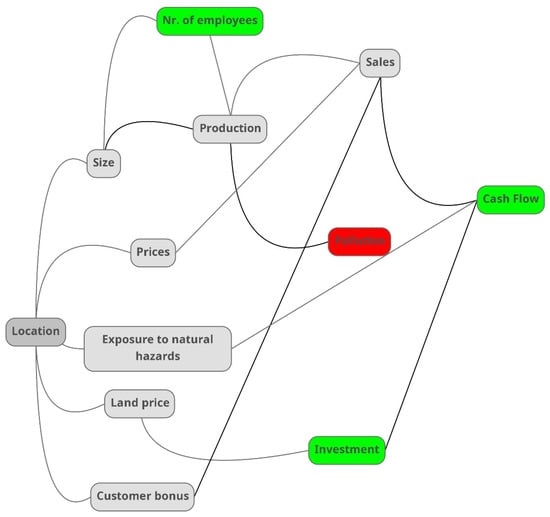 As already shown in the mind map in Figure 4, all the observed indicators are (positively or negatively) interlinked. Even though the first round looks similar to a spatial problem (Where to locate the company?) and a slightly economical problem (What size of the company?), students adopted a multidisciplinary approach and (during feedback) stated several other perspectives.