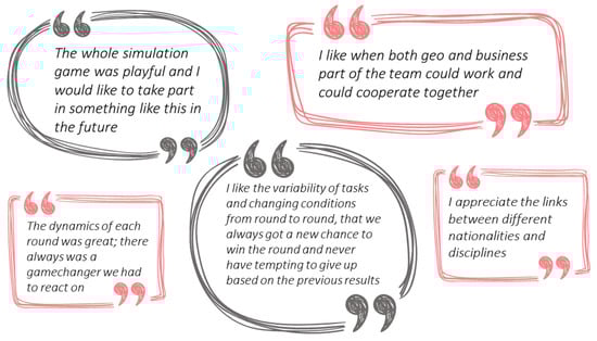 Dealing with the results published by the authors of [], the positive impacts of multidisciplinary teaching methods on the students’ abilities can be underlined. In the case of [], the participants were able to adapt to new tendencies and initiate the necessary changes for the effective functioning of business under the conditions of the digital economy. The participants of the SPATIONOMY course and simulation game were able to think outside of the box, with the multisectoral approach in sustainable business development.