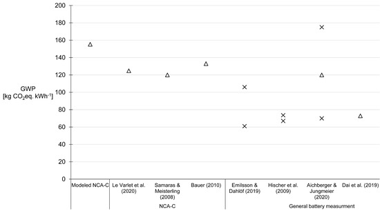 - Aichberger, C.; Jungmeier, G. Environmental Life Cycle Impacts of Automotive Batteries Based on a Literature Review. Energies 2020, 13, 6345. [Google Scholar] [CrossRef]