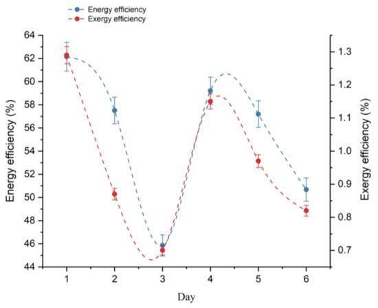 Based on Equations (21) and (23), the exergy efficiency can be calculated as [31]: