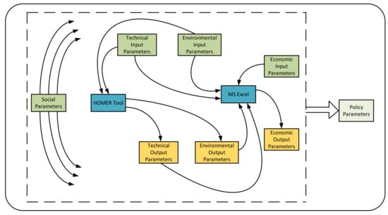 It is important to state that it is impossible to achieve the sustainable planning and design of the energy system without a sound simulation and analysis. This is because several factors and dimensions are involved which need to be critically considered given that the overall aim of an energy system is to meet the users’ demand at a given time. Additionally, more than being technically and economically viable, energy system planning and design strategy must consider other aspects such as the social, environmental, and legal or institutional parts [6,9]. Therefore, it is of interest in this paper to present a simulation framework that will integrate the above-mentioned crucial factors. Though the complexity of the problem to be solved usually determines the choice of the simulation tools and analysis to be employed, it is still necessary to have a strategy or an approach that can guide the process and analysis.