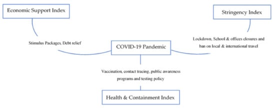 The core objective of this study was to assess the impact of policy measures adopted by the South Asian countries in reducing the COVID-19 pandemic. The study included seven countries of the region including Afghanistan, Bangladesh, Bhutan, Nepal, Pakistan, and Sri Lanka. Maldives was excluded from the study due to the unavailability of data on several variables. The study used weekly data for the time span from 1 January 2020 to 31 May 2021. The variables used are described in Table 2. Figure 3 depicts government policy measures to curb the spread of coronavirus.
