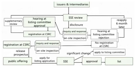 The approval-based IPO system has received much criticism from both the industry and academia [37,38]. A key element of the approval-based regime is a hard threshold on profitability, which implicitly motivates firms to manipulate their cash flow. In addition, this system does not allow for a complex ownership structure. To avoid these requirements, most Internet companies in China choose to list in foreign equity markets. For example, Alibaba is listed on the New York Stock Exchange, while Tencent is listed on the Hong Kong Stock Exchange. Another concern arises from the nontransparent, slow, and unpredictable IPO review process. According to a public speech given by a senior official in the CSRC, it usually took three years to finish the IPO process before 2017. As a response to complaints of the approval-based IPO system, “Decision of the CCCPC on Some Major Issues Concerning Comprehensively Deepening the Reform”, passed by the Eighteenth Central Committee of the Communist Party of China in November 2013, first announced that the country should adopt a market-oriented registration-based IPO system, in which the CSRC only verifies the compliance of issuance application documents rather than making ultimate decisions.