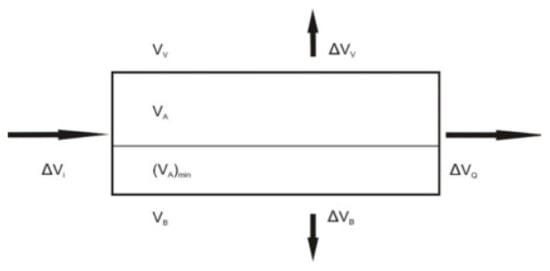 where V is the volume of liquid bound to the element (m3/m2), VB is the volume of liquid infiltrated below the unit area of the element (m3/m2), VV is the volume of liquid evaporated on the unit area of the element (m3/m2).