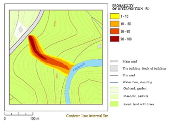 The information above indicates that with the number and quality of substrates describing the morphology and characteristics of the surface over which the liquid spills, a deterministic approach based on a single variant of the terrain model has almost no objective informative value. Therefore, a stochastic, probabilistic approach was selected [44].