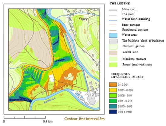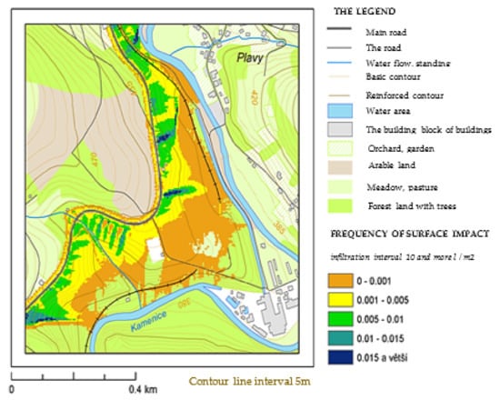 The resulting solution is a procedure for determining the zone of danger to the environment with its characteristics in the form of the frequency of impact of discrete points/partial areas near the route by the negative influence of a certain intensity. By negative influence, we mainly mean the infiltration of liquid into the soil, the depth of the pool, including the liquid retained on the terrain surface, and the transfer to surface waters where the amount of liquid is not evaluated at individual points, but in the entire coastline.