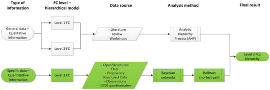 Finally, the global weights of level 3 FCs were obtained by multiplying the local weight obtained by BNs and their corresponding level 1 and level 2 FC weights obtained in the AHP analysis, and normalizing the results. Level 1 and level 2 FC weights were obtained from a previous publication [35]. This combination of BN and AHP weights was automated by applying MATLAB R2020b to allow an intersectional analysis according to the different possible profiles defined in the PI [40,41].