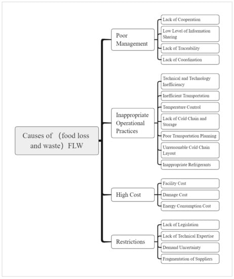 - Focusing on the cold chain stage: Liu (2014) reported that the main loss happened during the storage and transportation stages in China, and the main reason was the incomplete infrastructure of the cold chain. However, Wu and Hsiao (2021) emphasized that the top five food quality and safety problems occur in the product-receiving step [3].