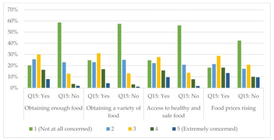 Further, the results confirm that stockpiling is not triggered by supply shortages but rather by consumers’ fears and concerns of a potential shortage. Indeed, 24.22% of the participants who stockpiled food were concerned about obtaining enough food compared to 5.6% for those who did not stockpile food. In addition, 31.62% of the participants who stockpiled food were concerned about food prices rising, compared to 19.06% for those who did not stockpile food (all by including levels 4 “very concerned” and 5 “extremely concerned”) (Figure 3). As Hansman et al. [71] underlined, this behavior has some economic explanations. Indeed, a crisis often leads to higher predicted future prices, making the current price appear as a “deal” requiring stockpiling as the optimum behavior. These results align with those obtained by Tsao et al. [39] and Maghsoudi et al. [50], who argue that panic buying and stockpiling seem triggered by consumers’ fears and anxieties of a potential, perceived shortage, rather than an accurate and effective food shortage. Therefore, feelings, emotions, and perceptions (that can be fueled by social media or even ‘fake news’) are essential determinants of panic buying. This clearly shows the importance of effective communication during crises and emergencies [42,43], such as the COVID-19 pandemic. Communication at the onset of crises is fundamental to prevent panic buying as this ‘social’ behavior seems quickly ‘contagious’ [52,53] and can degenerates in a short time if not managed in an effective and timely way. However, as for any government measure or intervention during the COVID-19 crisis [56,57], communication and awareness-raising campaigns should be well targeted in order to yield the expected results. Such campaigns should also highlight the many negative impacts of panic buying and stockpiling on agri-food markets and supply chains [17,18,19,20,33,58,60,61,62] and, consequently, food availability and accessibility for consumers themselves.