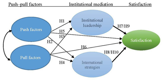 We developed 10 hypotheses regarding international students’ perceptions of push–pull factors linked to the institutional situation and satisfaction. The null hypotheses for testing were as follows: