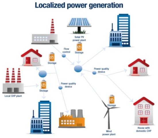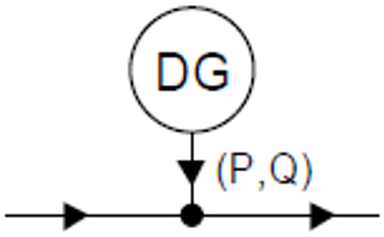 DG can be defined as an electric-power-generating unit that is installed near the load center. By installing a DG near load centers, electric power transmission lines are bypassed, thus bringing the generation closer to the load centers [9], as shown in Figure 4.