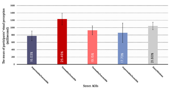 Figure 7). Nevertheless, the eye-tracking results show that participants were attracted to the impermeable/inaccessible (II) interfaces on average 41.73% of the time, doors/windows 33.98%, and permeable/accessible (PA) interfaces on average 24.29% of the time (