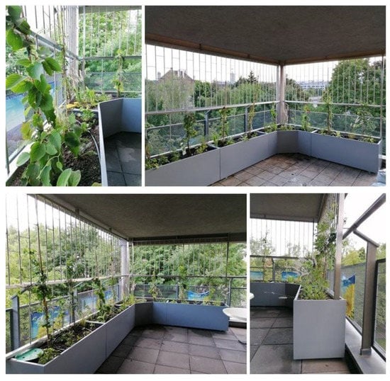 Figure 6 shows impressions of the co-creation workshop at the nursing home from the case study St. Pölten. L-shaped troughs with a climbing frame and standardised plants were planned on balconies from three different floors. Materials, dimensions, sizes, and plants were co-creatively decided together with the staff of the nursing home.