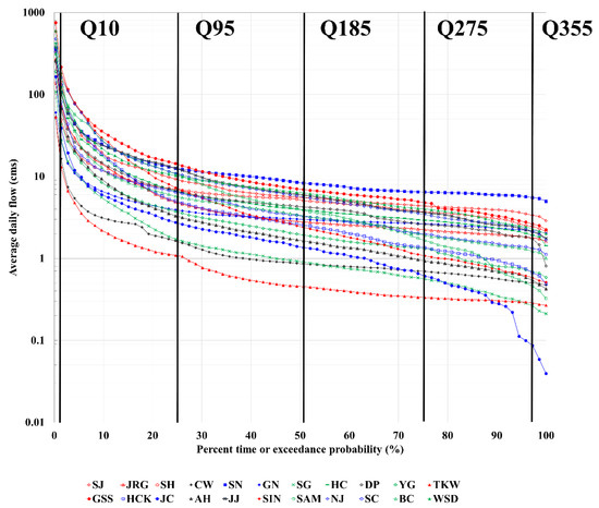 - Park, S.D. Dimensionless flow Duration Curve in Natural River. J. Korea Water Resour. Assoc. 2003, 36, 33–44. [Google Scholar] [CrossRef]