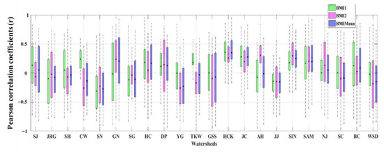 3.2. Correlation Analysis between Hydrological Compoenet and BMI