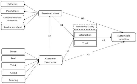 The literature review of the research explained that the concept of PV relates to the process of forming customer satisfaction and customer trust. Both are the component that builds customer intention, especially in the service industry [98]. In addition, the PV variable is dominantly used to measure the level of customer loyalty and it can give a positive score to customer satisfaction and customer trust [99]. Many researchers give detailed information about the PV concept that correlates with customer satisfaction [27,100,101]. In the software engineering and information systems industry, PV gives a positive score to customer sustainable intention as well as other variables like customer satisfaction and customer trust [29,102]. Thus, the present research proposes a hypothesis as follows: