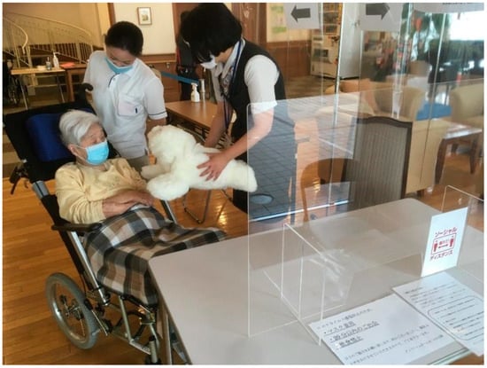 Some researchers have addressed concern for the risk of infection from PARO’s fur, as it was not designed to be regularly removed or machine washed. This may be of concern, especially for individuals who are immunocompromised [5,15]. Due to the outbreak of COVID-19, discussions regarding infection prevention and control (IPC) issues have dominated not only in the medical and welfare fields, but also in daily life, resulting in the call for “social distancing”, strict infection control measures, and daily use of face masks and hand sanitizers [22,23].