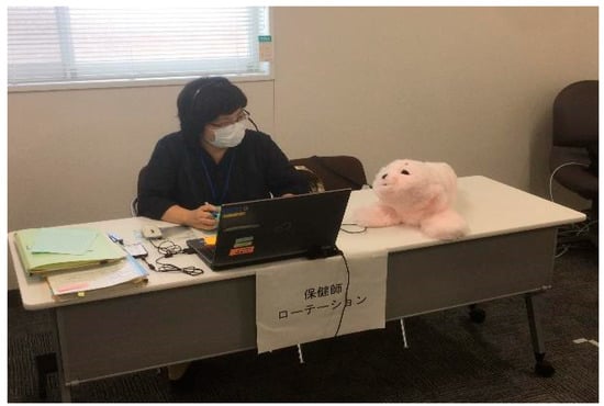 To address these stressful circumstances, one light pink PARO was installed at the Ikebukuro Public Health Center in Toshima-city, Tokyo on 11 May 2020, to support the telephone counselors with their mental health issues arising from the stressful working environment (Figure 10).