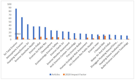 First 20 journals with the highest publications in studies on road dusts and their 2020 impact factors (IF) according to Thompson Reuters.