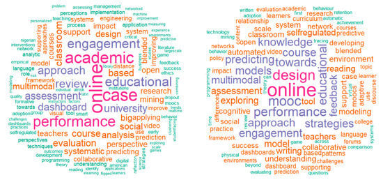 As shown in Figure 3, similar words stand out in both clouds. It is not surprising to have terms such as online and performance as common words since most LA methods are based on data in the edTech tools [5], and possibly focusing on student performance [15]. Similarly, predictions, model building, assessment data, student engagement, achievement, etc. have also been among frequent topics. The term multimodal also has been used by many publications. Therefore, it could also be understood that data from multiple sources were of interest.