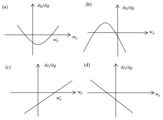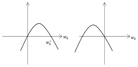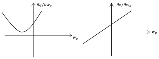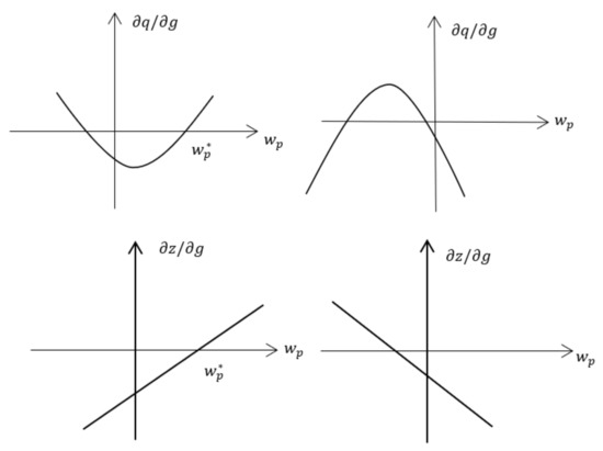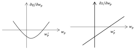 All the results are connected with the parent’s wage, , and the child’s wage, , so we used a comparative static analysis method to study the effect. In addition, we concentrated on the influence of parental income and education on their decision-making, so we transformed the following formulas as a function of parent wages, , based on the different categories of children’s wages, .
