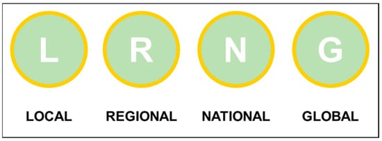 Point symbol: a circle with “gold”-coloured edge. A capital letter in the centre of the circle indicates the relevance of the geosite: L (local), R (regional), N (national) G (global) (Figure 6).