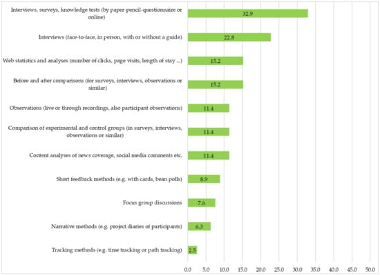 With reference to the relevant overarching project goals reported in the Section 4.1.3. it is interesting to see that practically no data are collected to somehow verify the objectives “Expanding the competencies of citizen scientists” and “Promoting the understanding of science”. This could be information on prior knowledge in relation to the topics of the project (14.1%), levels of education, knowledge gain (each 12.8%), or competence levels (10.3%), as well as “Expectations towards the project”, “Attitudes, opinions on aspects relevant to the project” (each 15.4%), “Experiences” (e.g., during implementation; 16.7%), or “Motivations for participating in the project” (17.9%).