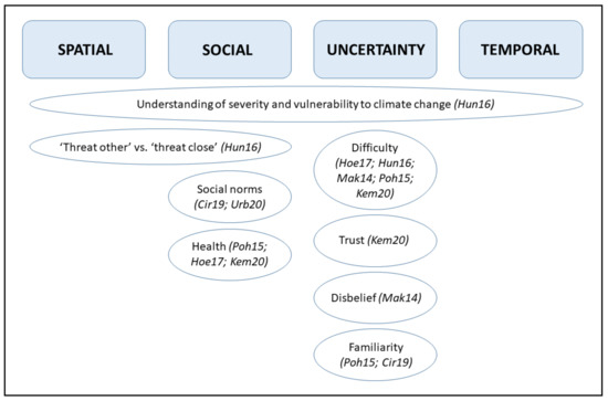 When the remaining barriers were explored through the lens of psychological distance, additional explanatory power is built. There are certain overlaps with some barriers found in K&A, e.g., disbelief in climate (psychological distance) and emotion (K&A), or threat of climate change (psychological distance) and values (K&A).