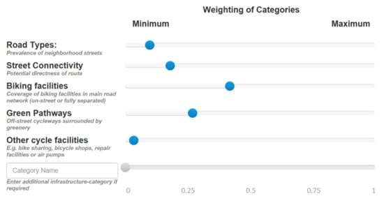 - Lin, J.-J.; Wei, Y.-H. Assessing area-wide bikeability: A grey analytic network process. Transp. Res. Part A Policy Pract. 2018, 113, 381–396. [Google Scholar] [CrossRef]
