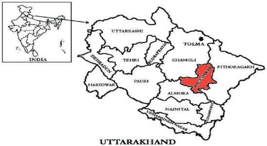 For documenting indigenous pest management practices, two villages, Kalag gajali and Gwar bhilkot, were selected purposively from block Bageshwar. Purposive selection of villages was necessitated to meet the requirement of a sufficiently large number of farming households with experienced old-aged people and remoteness of the village from the marketing centre. The total population of Kalag gajali village is 165, comprising 82 male and 83 females. Total number of households is 32, and literacy rate is 77.62%. The population of Gwar bhikot village is 516, comprising 222 males and 294 females. There are about 129 houses in Gwar bhikot village. The literacy rate of this village is 80.45% []. Hinduism is practiced by the majority of the population in both the villages. The Brahmin community dominates in this village. Kumaoni and Hindi are the local spoken languages by the farmers of both the villages. The Bageshwar assembly seat is reserved for a person belonging to the scheduled caste. The majority of the villages’ population are either primary agriculture practitioners or work as marginal workers in others’ fields. Rice, wheat, and ragi are the primary agricultural commodities grown in these villages.