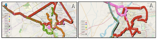 Representation of vehicle traveling in Islamabad (left) and Lahore (right).