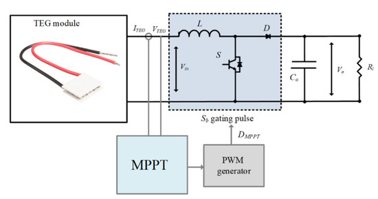 - Park, J.; Kim, S. Maximum power point tracking controller for thermoelectric generators with peak gain control of boost DC-DC converters. J. Electron. Mater. 2012, 41, 1242–1246. [Google Scholar] [CrossRef]