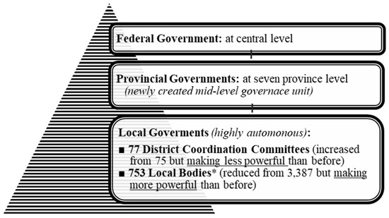 - Chaudhary, D. The decentralization, devolution and local governance practices in Nepal: The emerging challenges and concerns. J. Pol. Sci. 2019, 19, 43–64. [Google Scholar] [CrossRef]