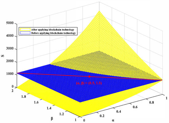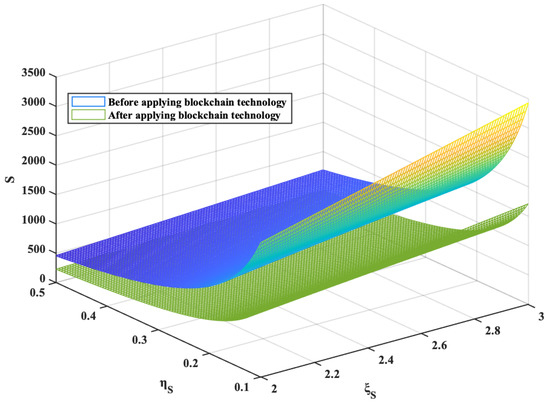 At the initial stage of the utilization of blockchain technology, it needs to be integrated with the market effectively, and through continuous adjustments to adapt to the law of market development [39]. Comparing S before and after the introduction of blockchain technology: