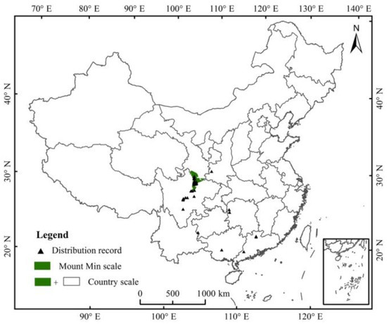 - Connor, T.; Viña, A.; Winkler, J.A.; Hull, V.; Tang, Y.; Shortridge, A.; Yang, H.; Zhao, Z.; Wang, F.; Zhang, J.; et al. Interactive Spatial Scale Effects on Species Distribution Modeling: The Case of the Giant Panda. Sci. Rep. 2019, 9, 14563. [Google Scholar] [CrossRef] [Green Version]