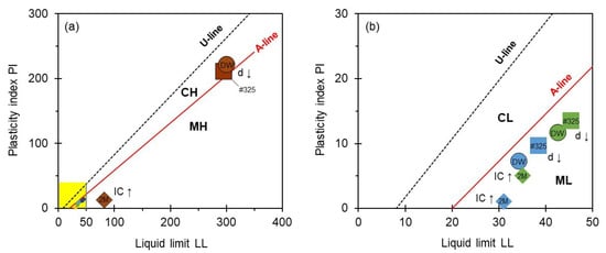 - ASTM D4318. Standard Test Methods for Liquid Limit, Plastic Limit, and Plasticity Index of Soils; ASTM: West Conshohocken, PA, USA, 2005. [Google Scholar] [CrossRef]
