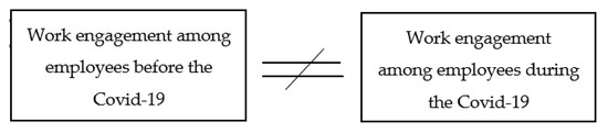The negative influence of COVID-19 on the working and personal lives of employees may lead to frustration, anxiety, stress and burnout. Moreover, these negative feelings can affect employees’ work engagement, leading to work errors and poor work quality which may eventually influence an organisation’s ability to survive in these difficult times [29]. Due to lockdown, work from home is difficult for employees as they do not feel the organisational climate at home. Due to frequent interruptions of family members, work-life conflict arises. Also, some employees at home do not have the proper equipment and tools (computer, mouse, printers, scanners, headphones, webcam, internet connection, and dedicated workspace—a quiet place to work). They are not certain about their job security or about their salary [14,29]. During the pandemic, most employees feel stressed and depressed. Because of these problems, employees may lose focus on their work, so there is a need for more employee engagement [14]. Therefore, we hypothesise that (Figure 3):