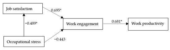 Results of structural model analysis for employees’ work environment assessment before COVID-19. Note: * p < 0.01.