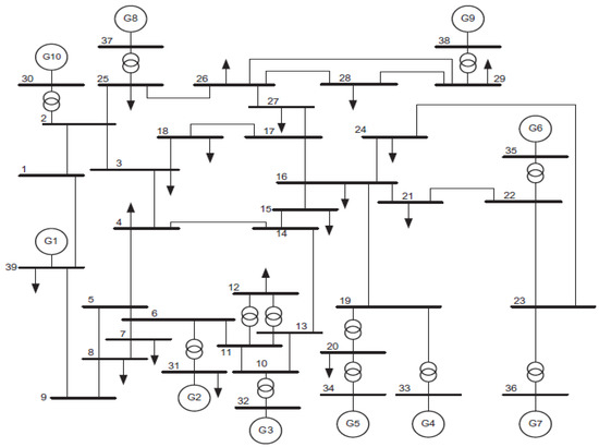 Single line diagram of Ten-generator thirty-nine-bus new-England power system.