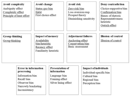 - Benson, B. Cognitive Bias Cheat Sheet: Because Thinking Is Hard. Available online: https://medium.com/better-humans/cognitive-bias-cheat-sheet-55a472476b18#.c74x1wf87 (accessed on 23 January 2021).