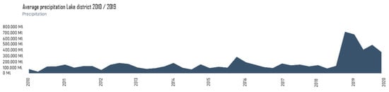 Average precipitation in Lake District in the period between 2010 and 2019.