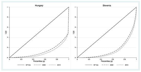 Lorenz-curves for the Hungarian and Slovenian pig sector. Source: authors’ calculation.