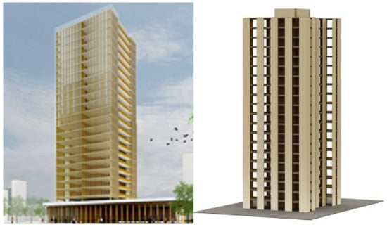 Additional concepts have been proposed by some other practitioners. Michael Green Architects (MGA), in association with Equilibrium Consultants, both from Vancouver, has designed buildings up to 30-stories tall following the “Finding Forest Through Trees (FFTT)” concept (Figure 11). There has been additional research on the structural system [19]. Chicago-based consulting company Skidmore Owings and Merrill (SOM) has prepared a virtual timber design of a 42-story concrete building built in the 1960s. The design includes CLT floors and framing in combination with concrete (Figure 12).